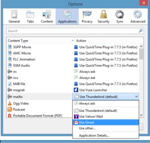 برای این کار در مرورگر وارد بخش تنظیمات (Option) شده و در قسمت Applications پایین رفته و گزینهی Mailto را پیدا کنید. در این بخش به راحتی می توانید سرویس های یاهو و جیمیل را به عنوان ایمیل پیشفرض مرورگر خود انتخاب کنید. همچنین اگر سرویس دیگری مد نظرتان است بر روی گزینهی Other services کلیک نمایید. البته متاسفانه سرویس Outlook از مرورگر فایرفاکس برداشته شده است.
